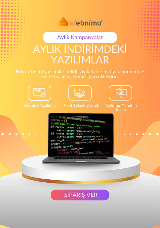 Webnimo, işletmelerin dijital dünyada güçlü ve güvenilir bir şekilde var olmasını sağlayan yenilikçi yazılım ve teknoloji çözümleri sunar. Amacımız, her büyüklükteki işletmenin dijital dönüşümünü hızlandırmak ve sürdürülebilir başarıya ulaşması için gerekli altyapıyı sağlamaktır. Modern araçlar, gelişmiş güvenlik önlemleri ve kesintisiz 7/24 destek ile, müşterilerimizin dijital projelerini sorunsuz ve verimli bir şekilde yönetmelerine yardımcı oluyoruz.